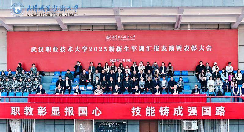 湖北日报讯(通讯员史可、刘一诺)冬阳和煦,旌旗猎猎。11月15日下午,武汉职业技术大学2025级新生军训汇报表演暨表彰大会在光谷校区田径场举行。