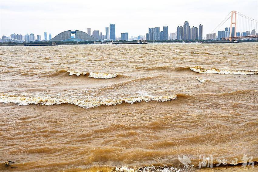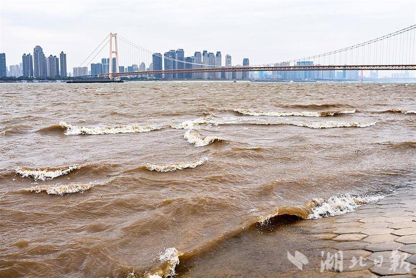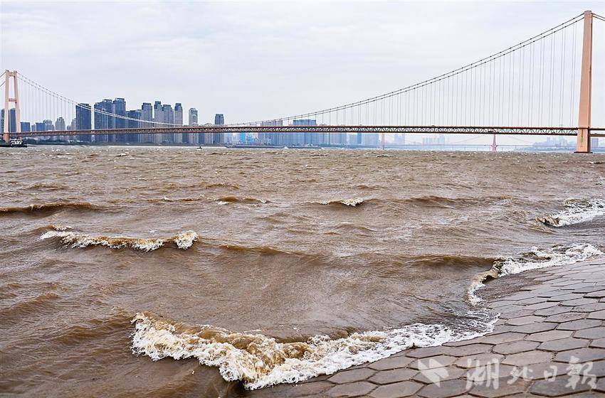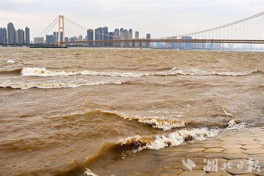 11月17日,武汉正经历今年秋冬首场强寒潮天气,一场大风来袭,杨泗港大桥附近的长江江面浪花滚滚,似海一样壮阔。
