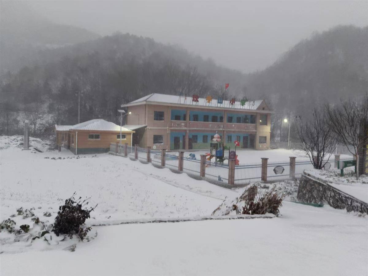 郧西县湖北口回族乡坎子山小学白雪皑皑。