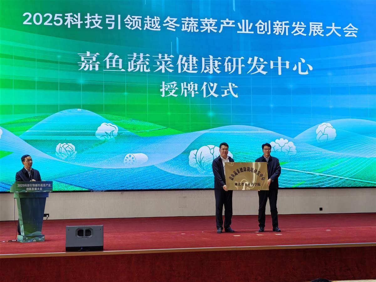 2025年科技引领越冬蔬菜产业创新发展大会上,嘉鱼蔬菜健康研发中心揭牌成立。湖北日报通讯员王麒摄