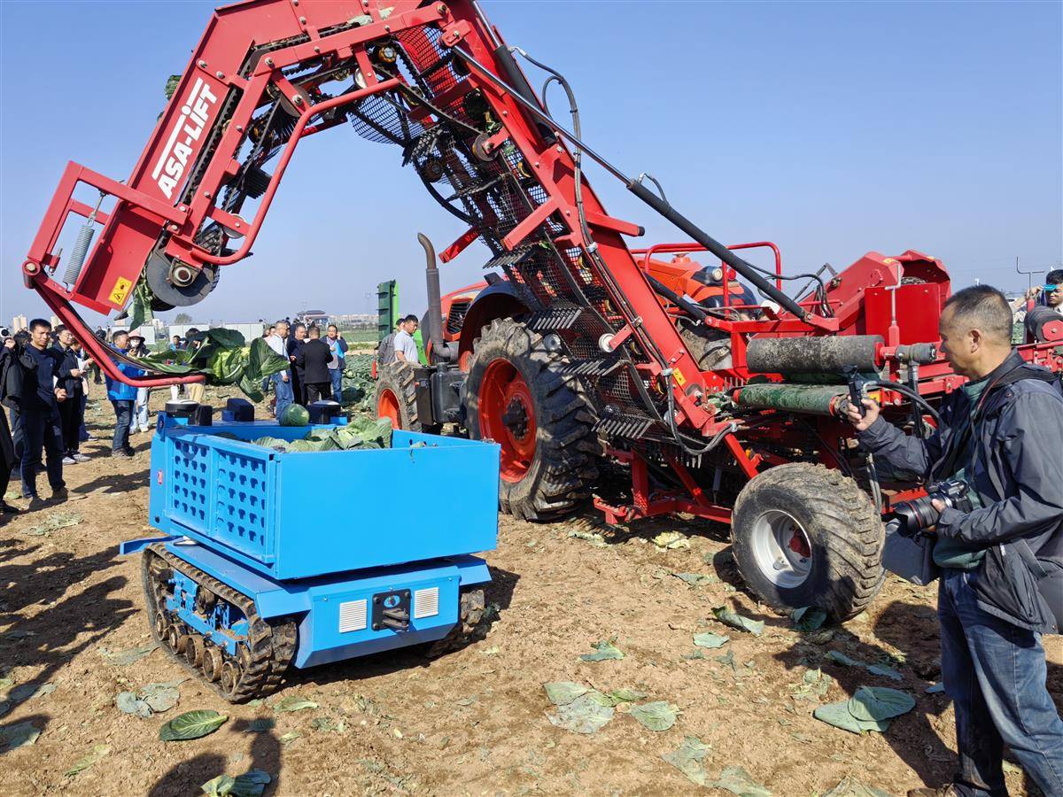 与会人员在嘉鱼县潘家湾镇观摩甘蓝机械化生产装备现场作业演示。湖北日报通讯员王麒摄
