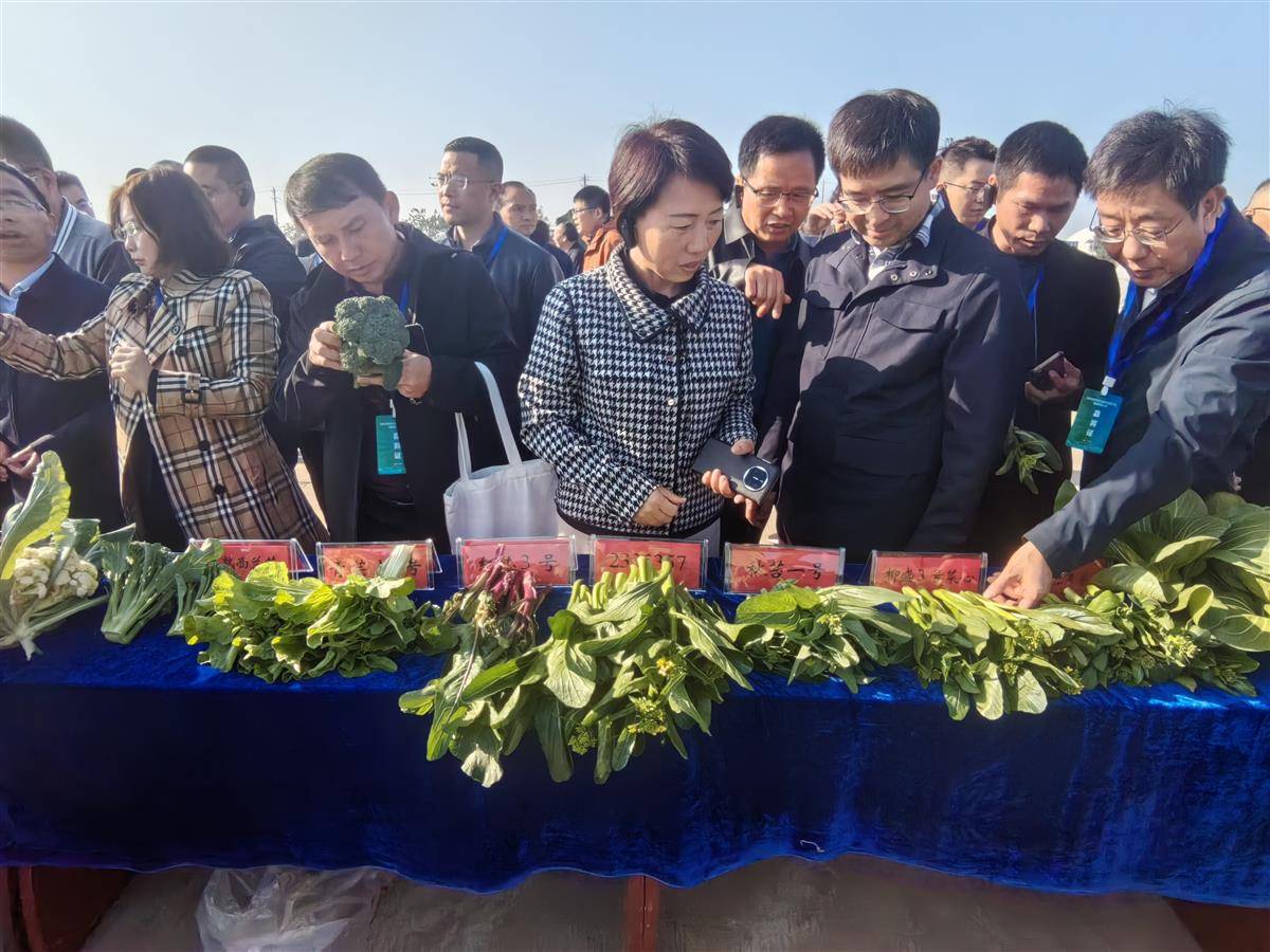 与会人员在嘉鱼县潘家湾镇观摩蔬菜选育新品种。湖北日报通讯员王麒摄