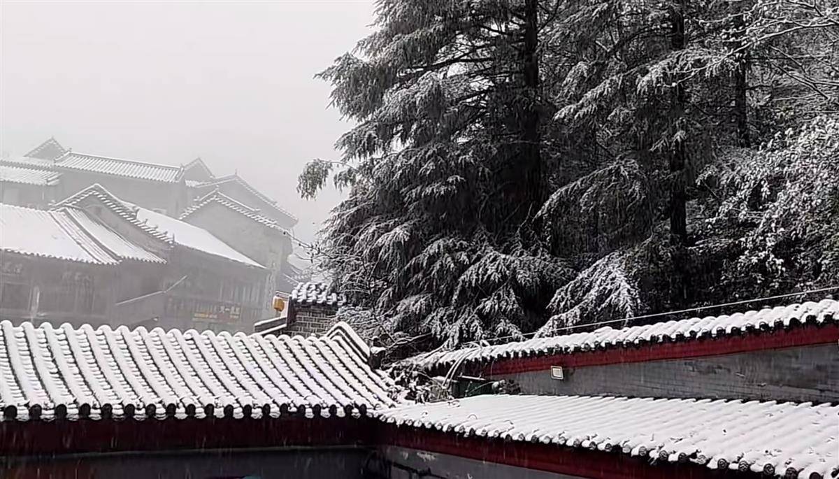 17日凌晨,武当山开始降雪。雪花漫舞中,红墙与白雪相映,云雾与寒意交织,整座仙山被白雪覆盖,恍若冰雪秘境,尽显冬日的苍茫与灵秀。