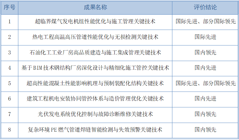 安装公司此次通过评价的8项关键技术,涵盖机电安装、电力工程、石油化工、新能源、通用安装、建筑工程等领域,展现了该公司主营业务领域的技术实力与创新活力。0