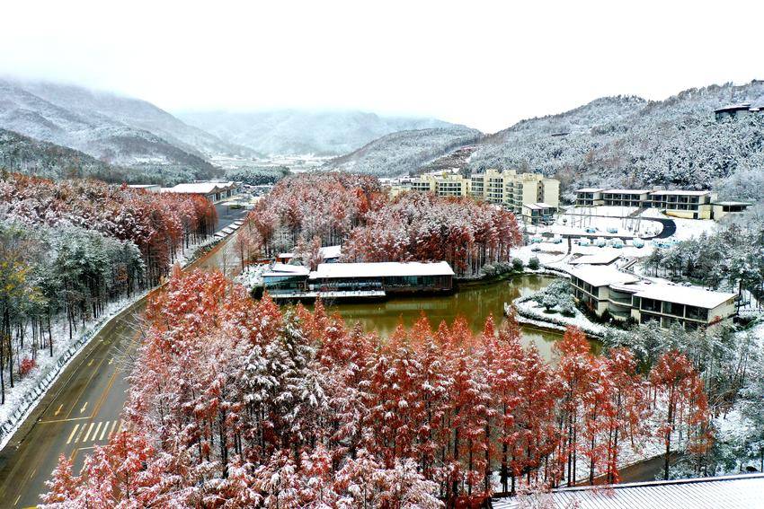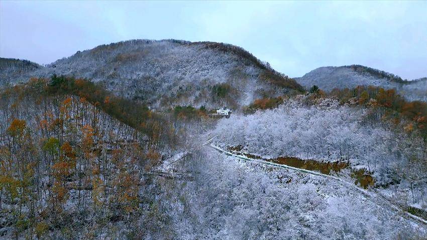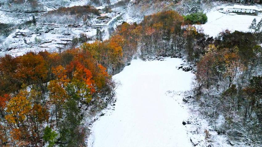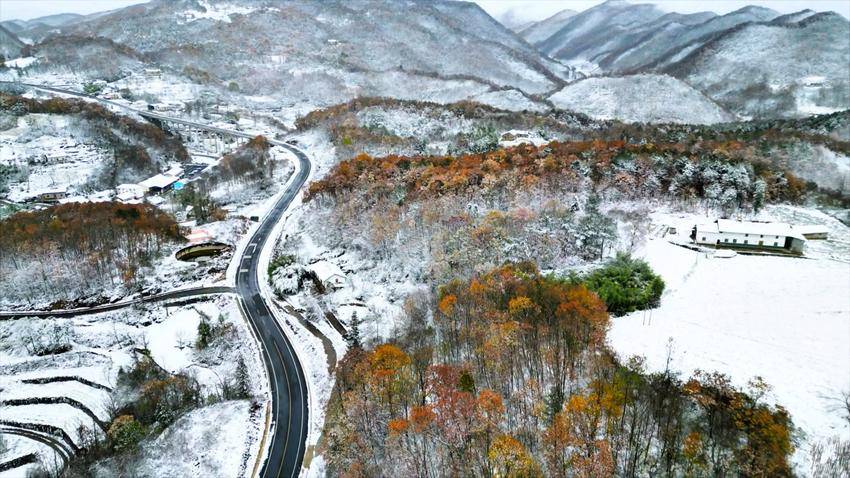 山岚裹着雪气,红叶浸着秋韵,示范区的山林在青白与丹红间流转,田野在素白与浅黄中铺展,乡村在静穆与温柔里沉眠。每一寸风景都带着刚柔相济的诗意,是秋的余情,也是冬的序曲,更将振兴路上的烟火气,晕染成一幅不用墨色的画,流淌成一阕无韵的诗——让兴山乡村振兴示范区,在这初雪与秋光的交融里,愈发清丽动人。