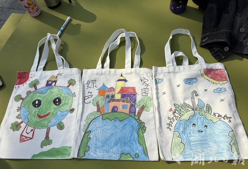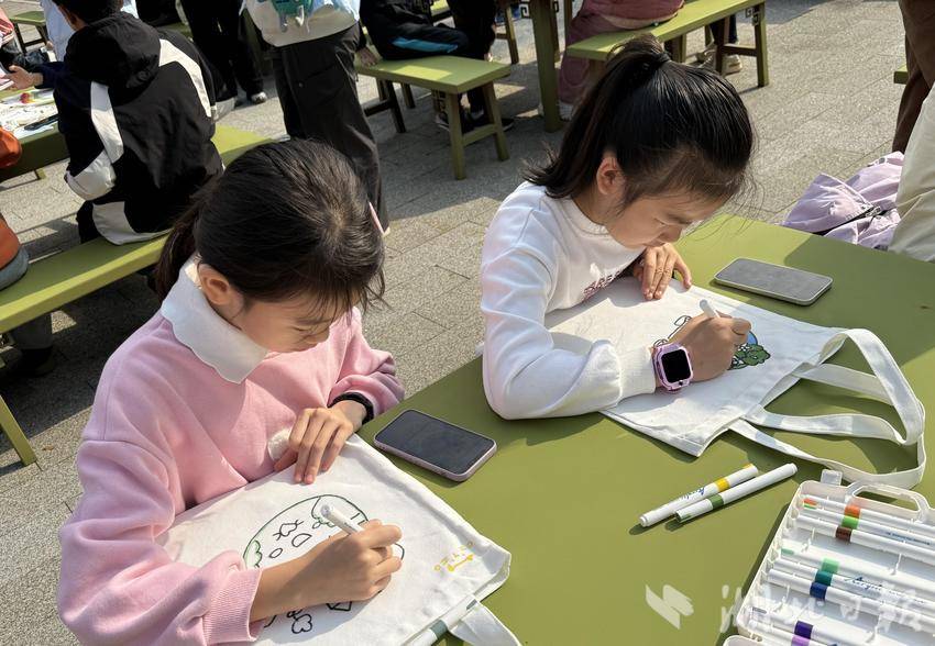 在志愿者的悉心指导下,50余名儿童与家长齐上阵,用手中的画笔在空白的帆布袋上尽情挥洒创意。孩子们的笔触虽显稚嫩,却饱含着对美好家园的无限憧憬。有的孩子精心描绘出心中那片绿意盎然的地球,湛蓝的天空、清澈的河流、繁茂的森林,每一笔都传递着对大自然的热爱;有的孩子则运用抽象的线条,巧妙地展现出环保的重要性,诉说着地球母亲对我们的呼唤;更有孩子别出心裁,将垃圾分类知识与趣味谜语相结合,通过猜谜底的方式,呼吁大家关注生态多样性,积极践行“绿水青山就是金山银山”的绿色发展理念。