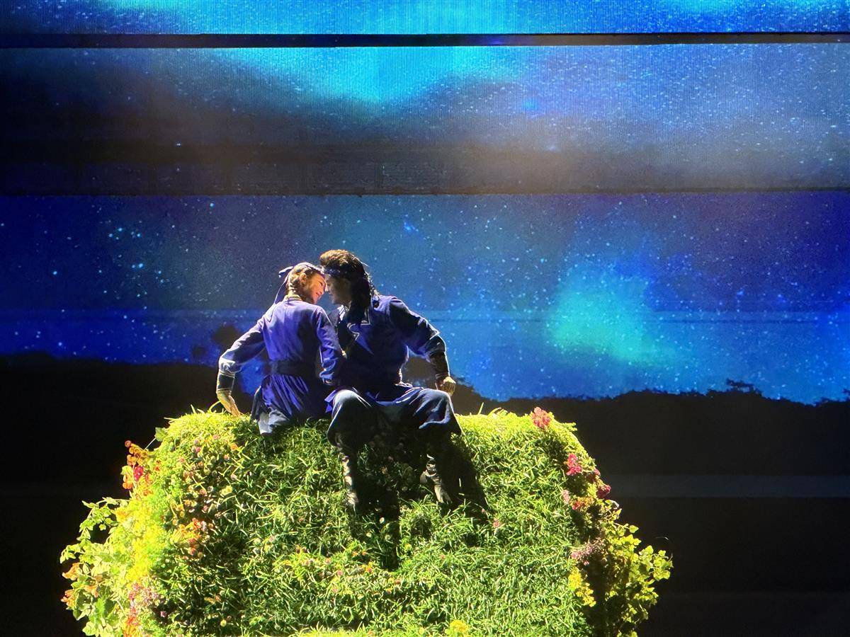 湖北日报讯(记者田佩雯、通讯员黄影)悠远的蒙古族长调、苍凉的呼麦、灵动的萨吾尔登舞蹈……11月17日,由新疆博尔塔拉蒙古自治州歌舞团与湖北导演团队联袂创排的歌舞诗《爱在赛里木湖》在湖北戏曲艺术中心(首义剧场)上演,精彩的演出深深打动了现场观众。湖北团队的诗意手法与新疆原生态艺术表达相得益彰,让整台演出既具叙事张力,又保持艺术感染力。本次演出将于11月17日、18日演出两场。