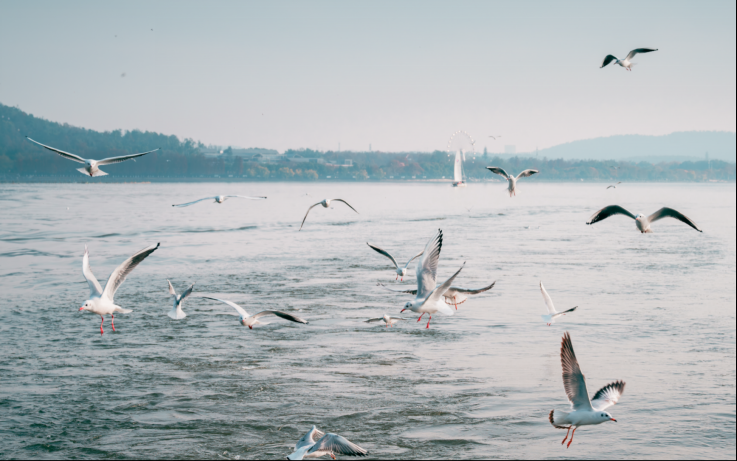 颜军透露,红嘴鸥对栖息地要求极高,而东湖凭借冬季温和的气候、禁捕后丰富的渔业资源,以及近年来持续优化的生态环境,成为它们迁徙路线上的“黄金驿站”。“红嘴鸥每年在武汉停留的时间有100多天,明年3月中旬几乎才会走完,12月至次年2月为最佳观赏期。”他补充道,“但建议游客以观察和拍摄为主,文明观鸥,保持适当距离,避免随意投喂或惊扰,让它们保持自然觅食的习性,共同守护这份冬日限定的美好。”