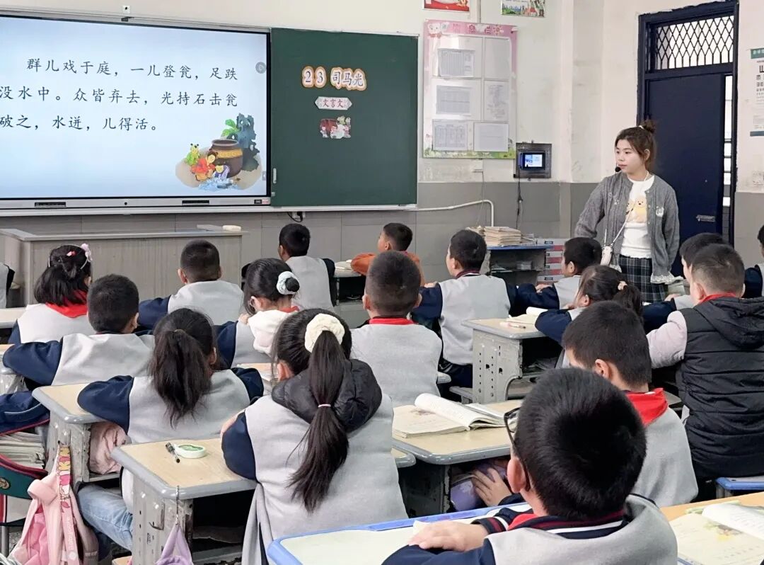 李瑶老师在《司马光》第二课时,以“美好品质·故事传讲人”为单元情境主线,聚焦文言文教学目标展开。课堂先通过看图、识人物等方式导入,再以“文言文学习小锦囊”为支架,依次落实读准字音、读出节奏、读懂文意的任务,借助注释、插图等方法帮助学生理解文本,同时感受司马光机智沉着的品质。