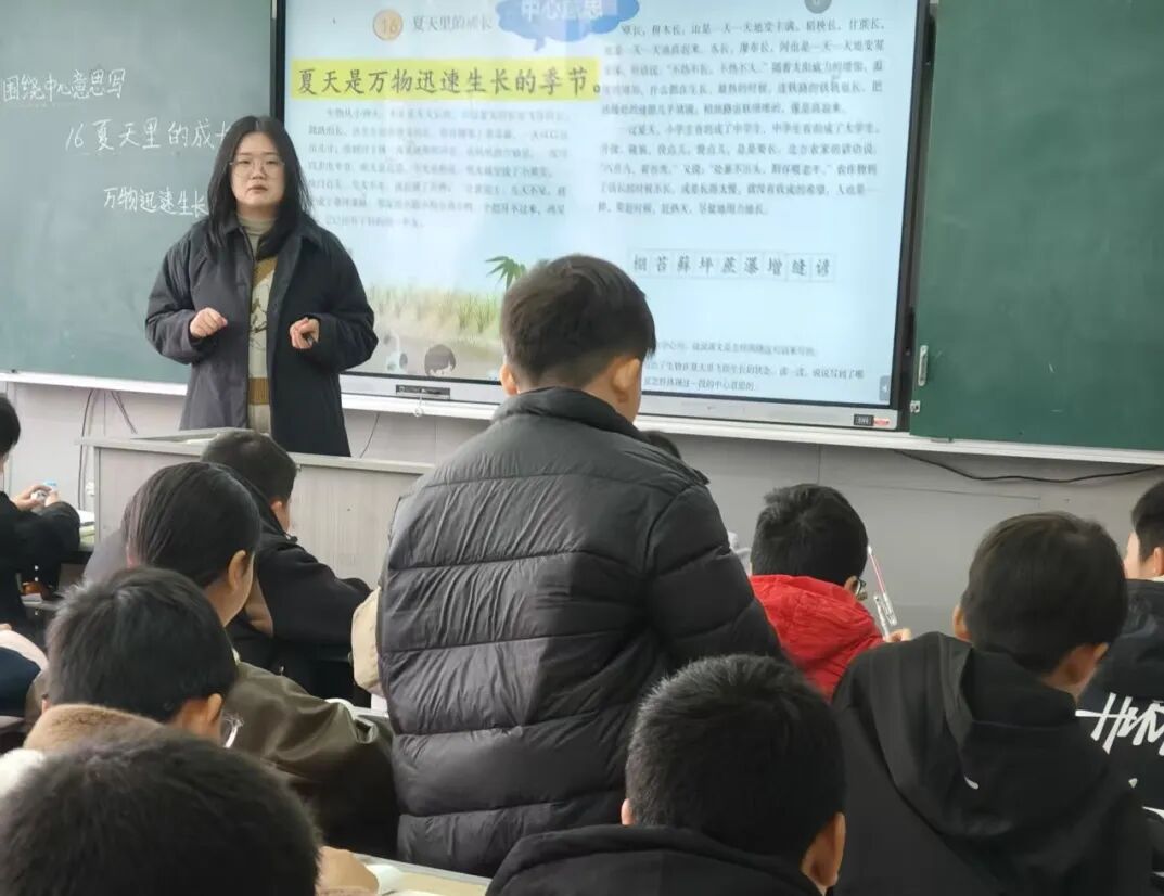 王希玲老师《夏天里的成长》一课,紧扣“围绕中心意思写”的单元目标展开教学。课堂以单元导语切入,明确习作方法;梳理文脉时,抓中心句“万物迅速生长”,拆解出“生物、事物、人”的选材维度,清晰搭建了文本框架。