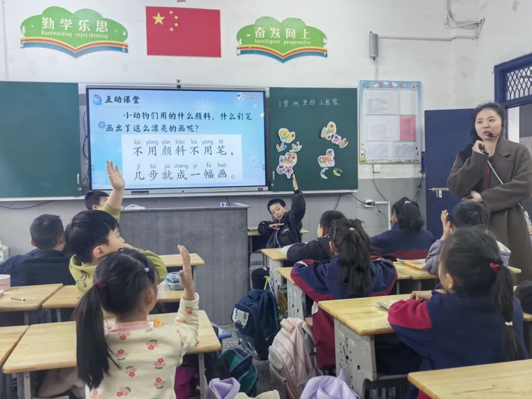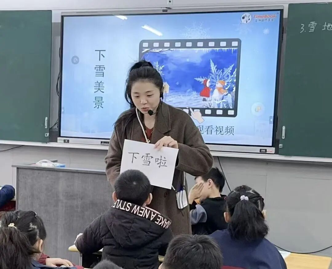 教学中融入朗读指导、写字训练(“用”“几”),还通过唱儿歌、编动作等活动强化趣味,既落实了字词、朗读目标,又让学生感受雪地作画的童趣。环节生动,契合低年级认知特点。