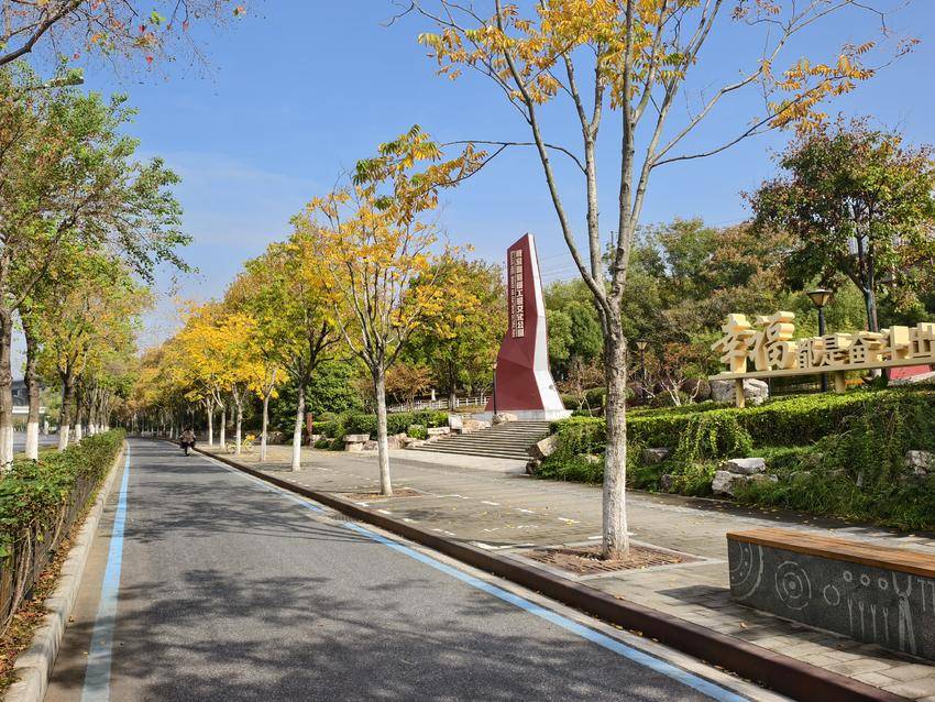 这条“景观画廊”不仅美在自然,更有独具匠心的工业风设计:刻有“红坊记忆”字样的耐候钢板树穴,印刻着齿轮、轴承等工业图案的坐凳,以及轴承造型的街头设施,诉说着“钢城”特有的文化记忆。它们与绚丽的秋叶相映成趣,形成了一道自然生态与工业文脉相融合的独特风景线。