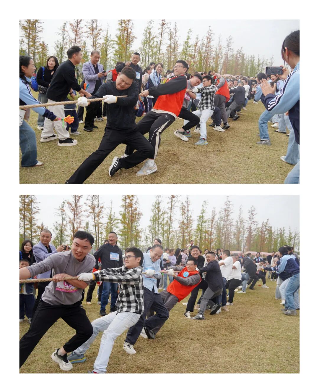 马拉松结束后,两园以年级组为单位,分为六组,以抽签的方式进行家长活力拔河比赛。随着裁判员哨声响起,家长们卯足干劲、全力拉绳,现场气氛热烈,孩子们、老师们的呐喊加油声此起彼伏,尽显运动竞技活动的欢乐与力量。