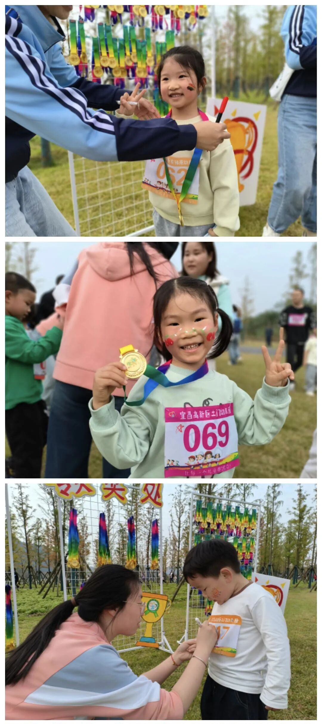 幼儿园为孩子们精心准备了奖牌与能量补给站。抵达终点后,孩子们在老师们的引导下领取专属奖牌,脸上洋溢着满分的自豪与喜悦。