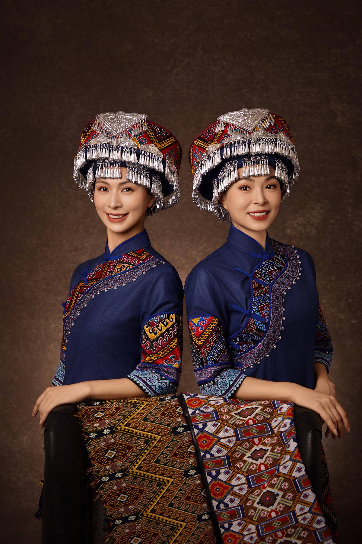 姐姐谭艳华(右)和妹妹谭艳宾身着西兰卡普纹样的民族服饰。(受访者供图)