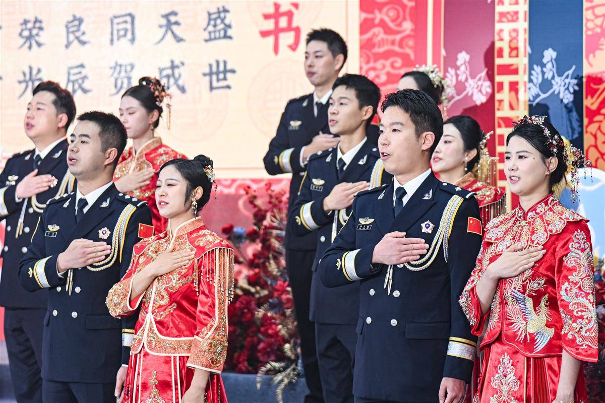 11月19日,参加集体婚礼的新人们在亲人和战友们的见证下喜结良缘。(湖北日报全媒记者 任勇 杨然 通讯员 武龚轩 摄)