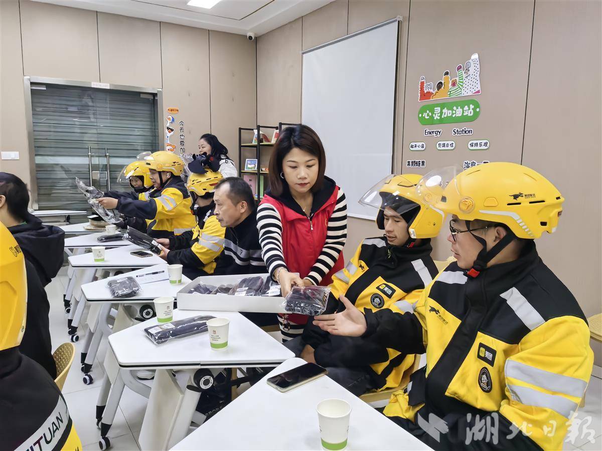 湖北日报讯(记者朱惠、通讯员李玲、章李)近日,武汉迎来降温,寒意渐浓,汉阳区各社区纷纷关怀新就业群体,组织志愿者为外卖小哥、快递小哥编织围巾,并邀请他们趣味运动会,新就业群体也积极参与基层治理,学习社区消防安全知识,争做“平安骑士”,回馈社会关爱。