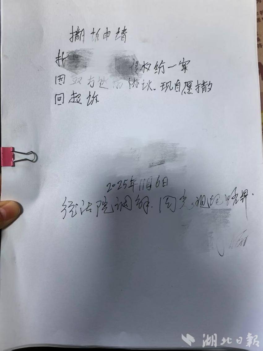 法理是标尺,情理是温度,法官的话深深触动了当事人。经过数小时的耐心沟通与释法明理,哥哥与弟媳逐渐从最初的情绪对立转向理性沟通,最终互谅互让,就土地边界问题达成一致意见。弟媳当场表示:“法官说得对!亲情比什么都重要,这官司我不打了。”并提交了撤诉申请。兄弟两家人的手重新握在了一起。