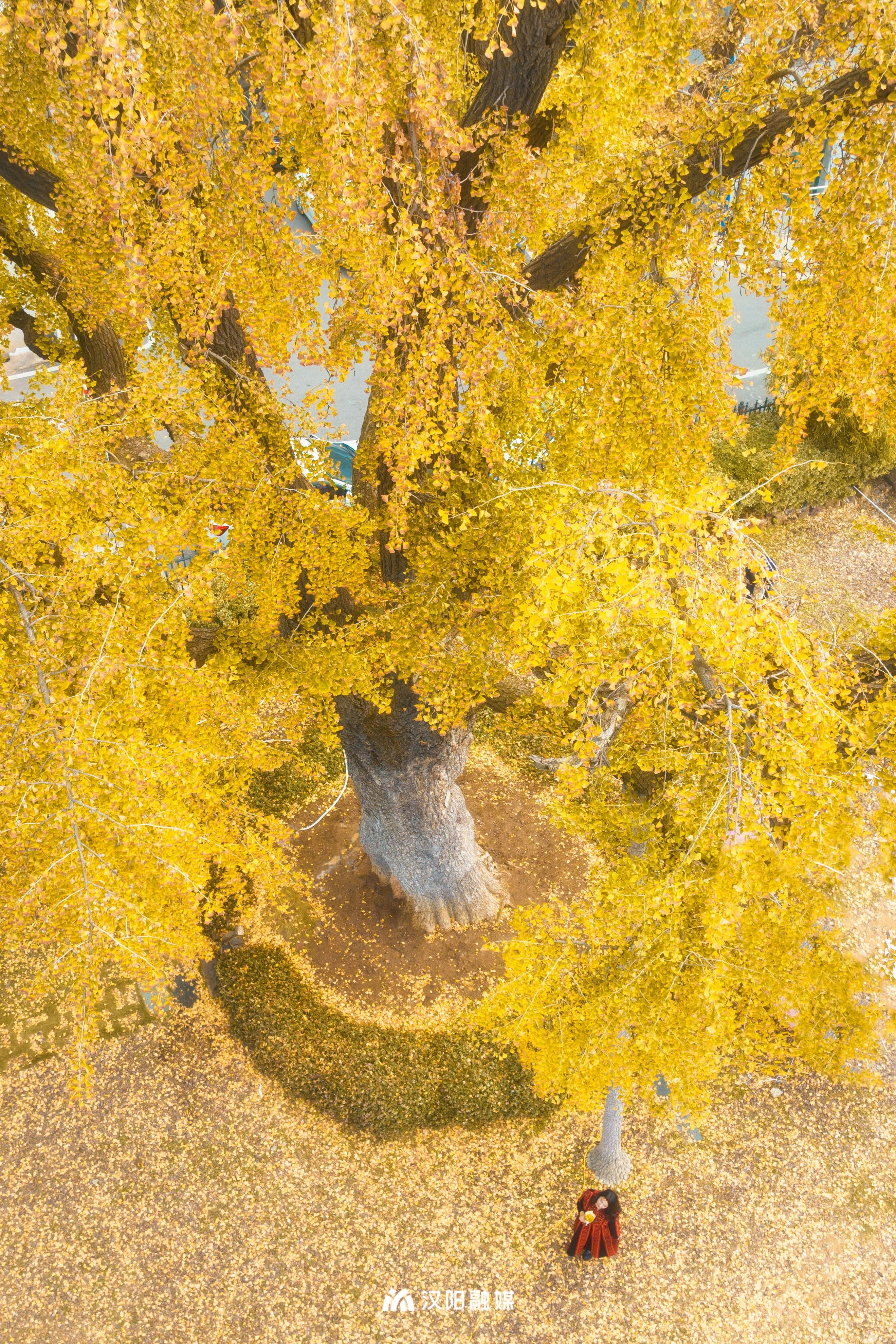 每年11月底至12月中旬,546岁的汉阳树便迎来全年最佳观赏期,满树金黄与落叶铺地的盛景吸引着无数游客慕名而来。