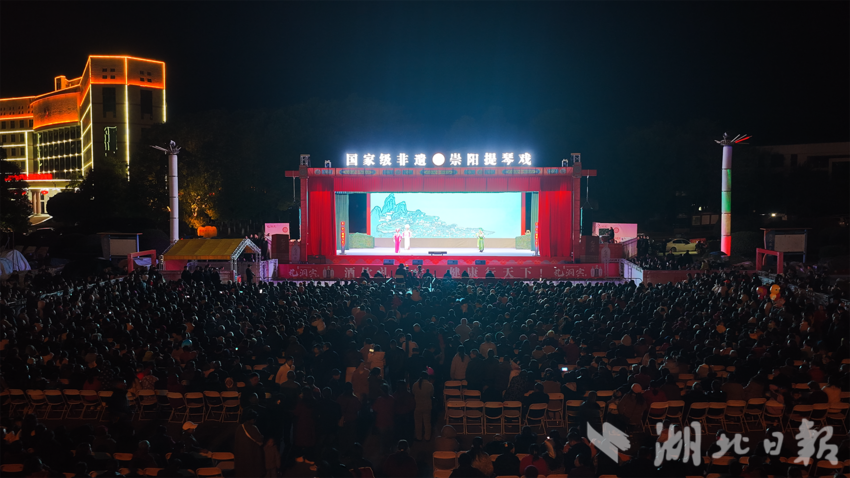 湖北日报客户端讯(通讯员陶然、赵浩、尧康、石盾、王蓓蓓、阮煜茜)弦音袅袅绕全城,乡韵悠悠润人心。11月19日晚,崇阳县大集广场华灯璀璨、座无虚席,近2000个座位被戏迷提前抢占,国家级非物质文化遗产代表性项目崇阳提琴戏展演周在此精彩启幕。