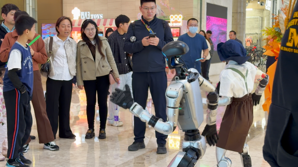 会跳舞的人形机器人要转场汉交会为嘉宾端茶倒水。许玲 摄