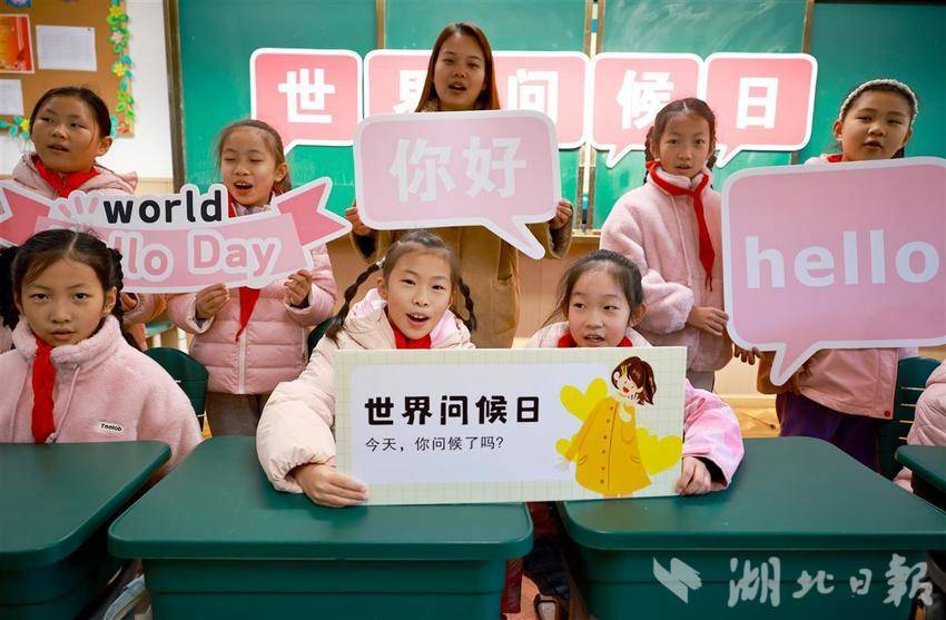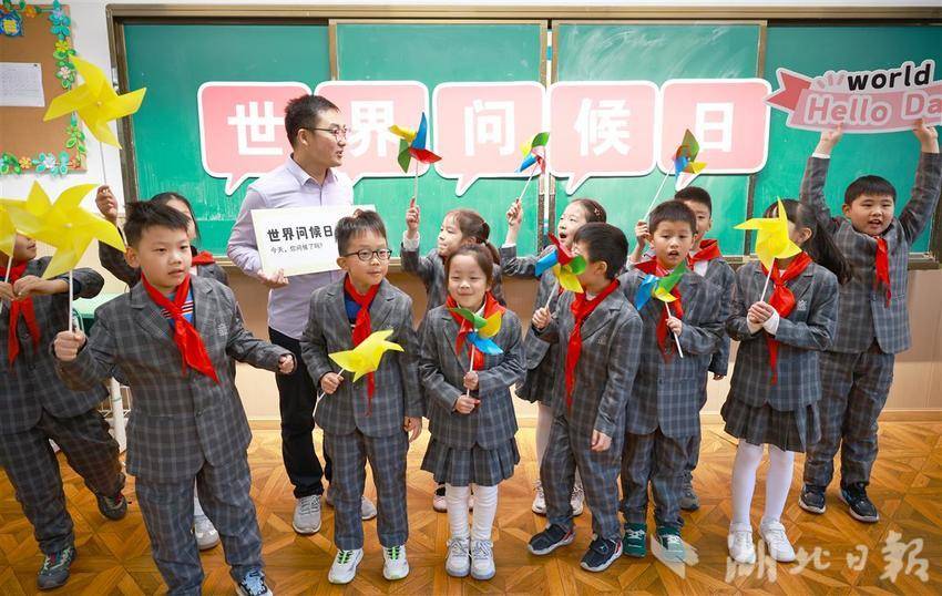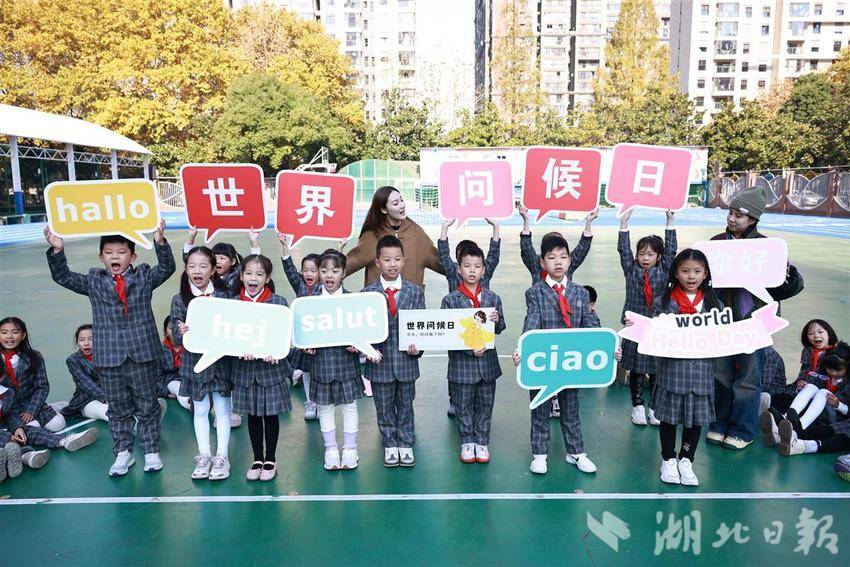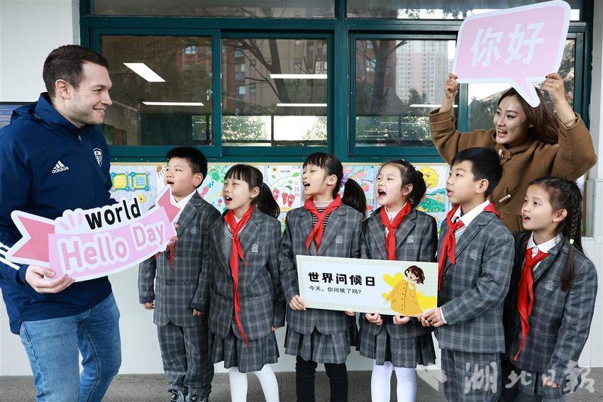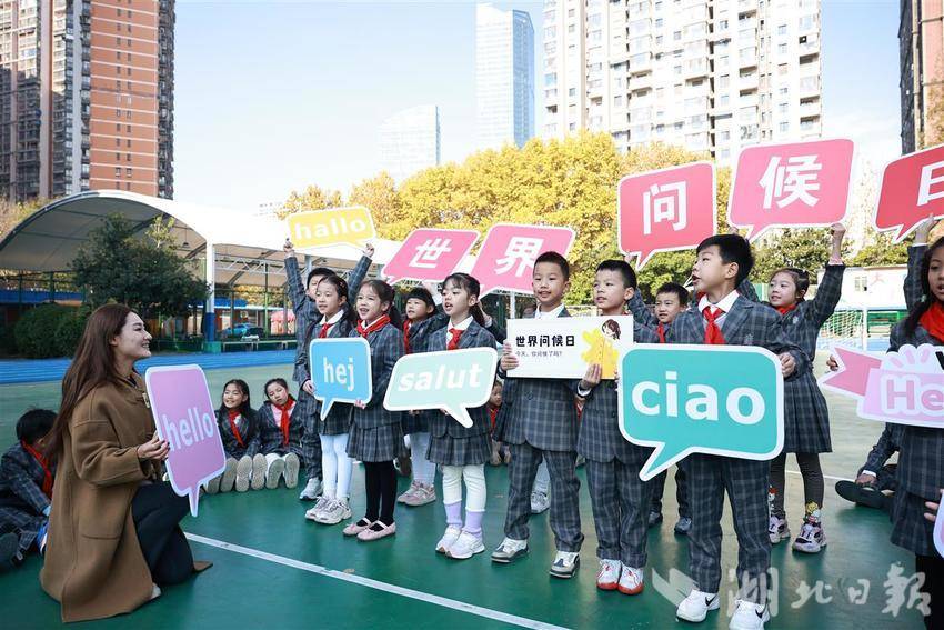 武汉市洪山区未来实验外国语学校美林校区,在老师的指导下,学生们学习礼仪、互致问候,传递微笑,迎接11月21日“世界问候日”的到来。