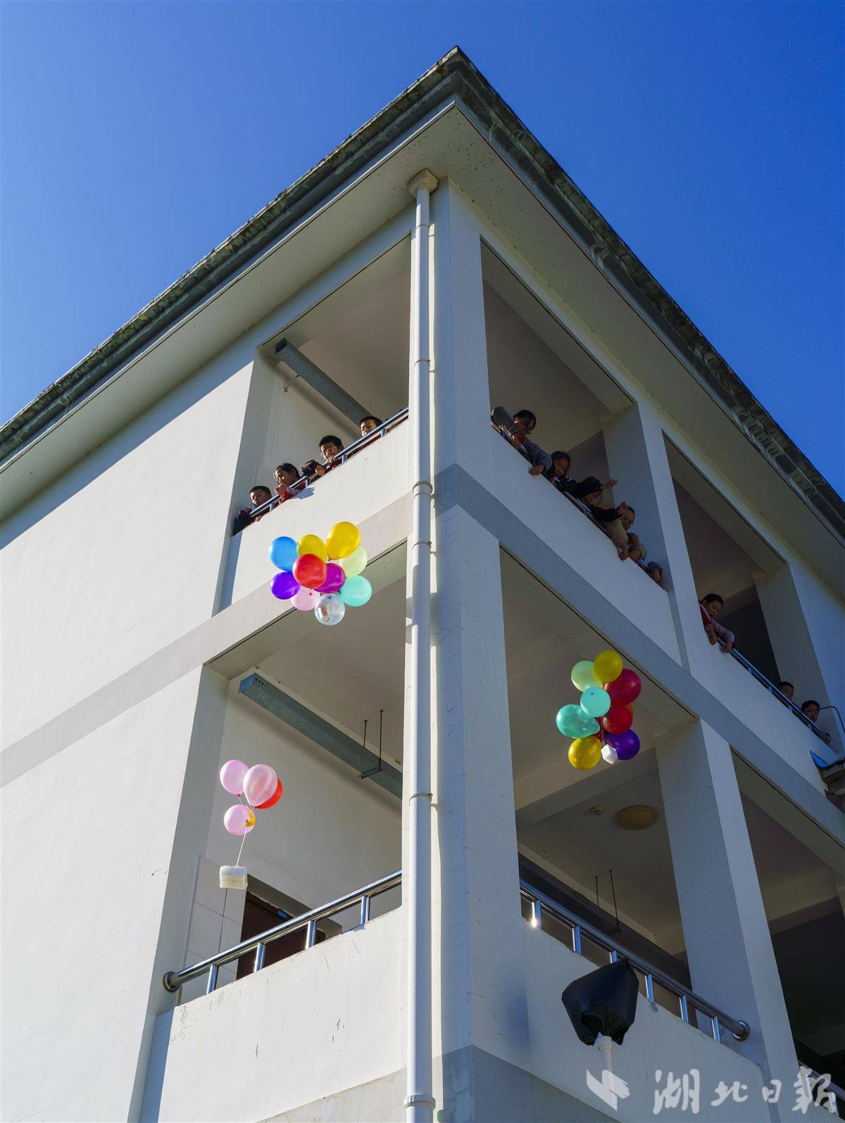 11月19日,秭归县两河口镇两河口小学,学生利用科学知识挑战“高空扔鸡蛋”。
