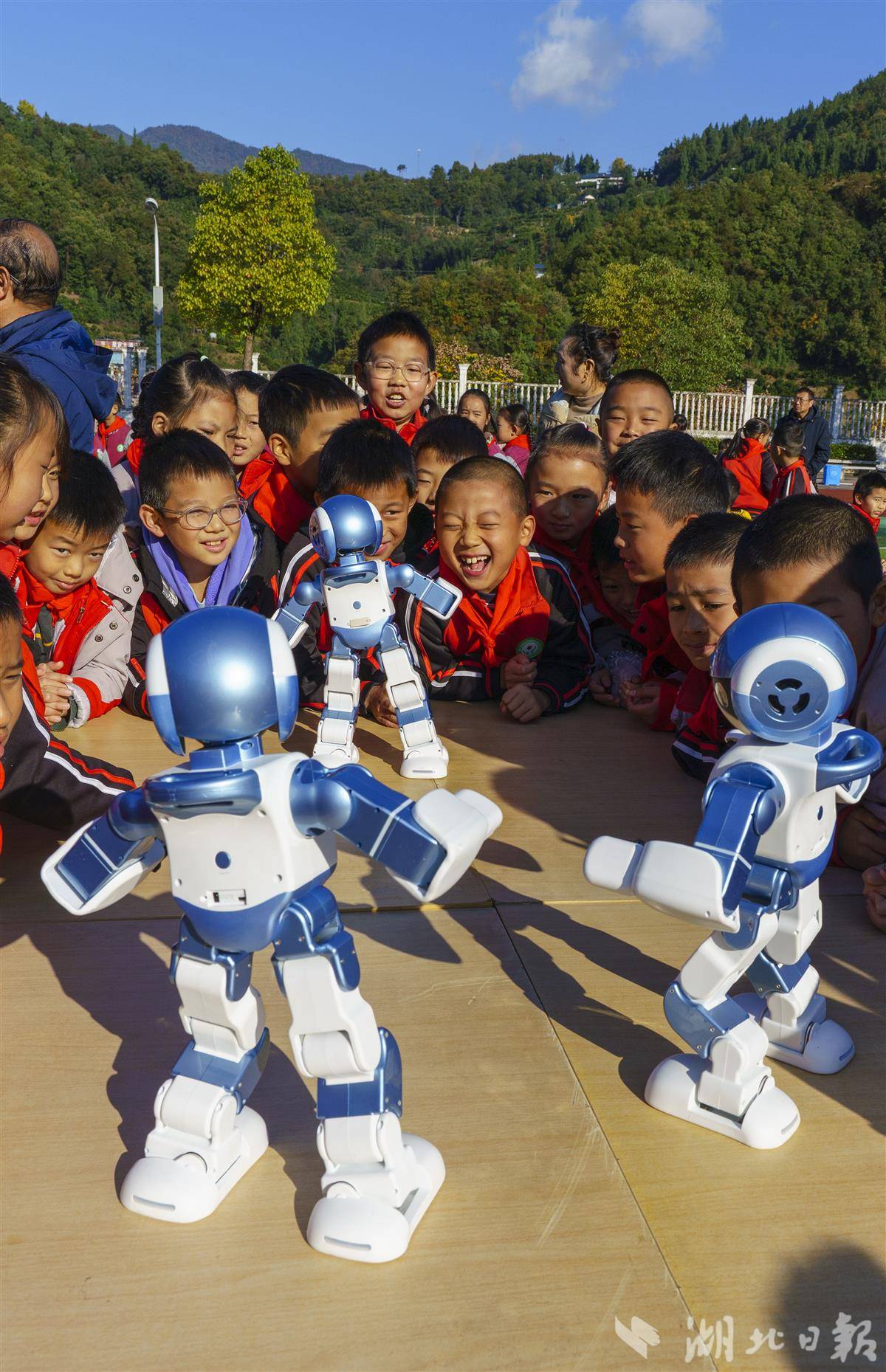 11月19日,秭归县两河口镇两河口小学,学生近距离感受机器人。