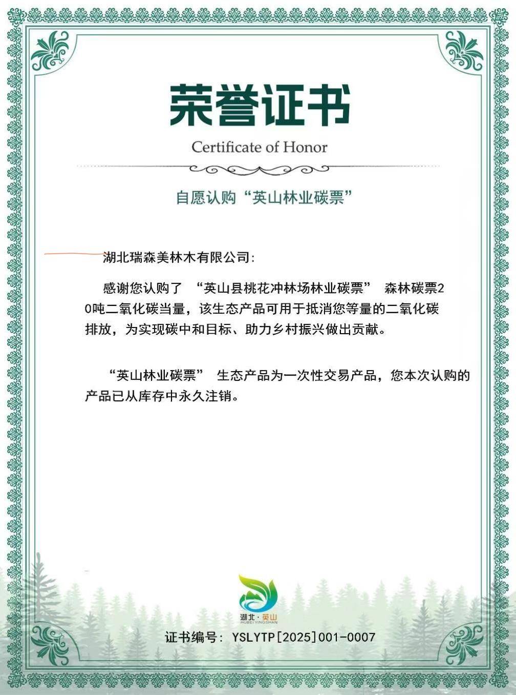 英山森林覆盖率达65.35%,位居黄冈市首位、湖北省前列,丰富的森林资源为林业碳汇开发筑牢基础。8月12日,英山县签发黄冈市首例林业碳票,涵盖4个国有林场2389.94 公顷林地,计入期为2020年1月1日至2039年12月31日,计入期长达20年,首期核算期自2020年1月至2025年5月,碳汇量98234.57吨,为线上碳票交易提供了优质的碳汇资产支撑。