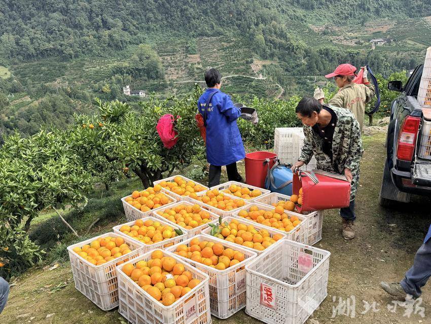 山间忙碌的采收身影与满载的鲜果相互映衬,勾勒出一幅产业兴、乡村美、农民富的生动图景,展现出特色农业带动乡村发展的良好成效。