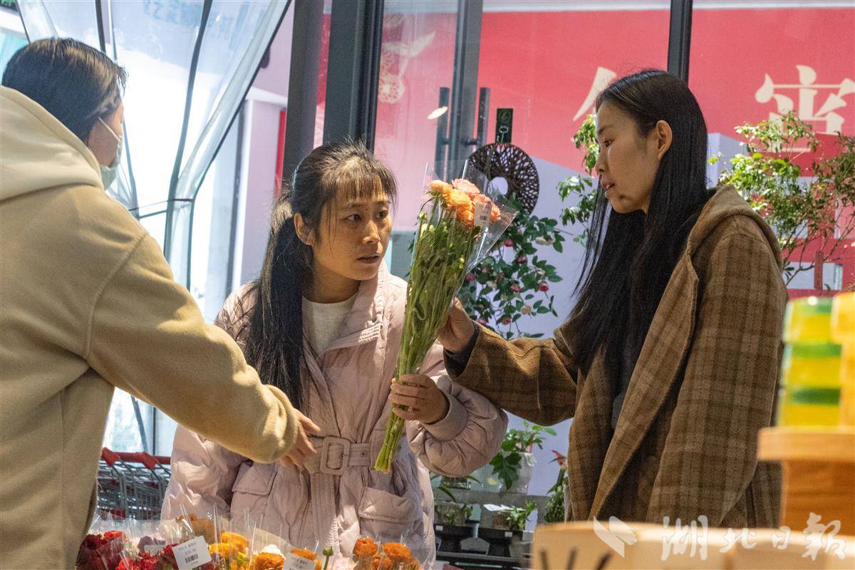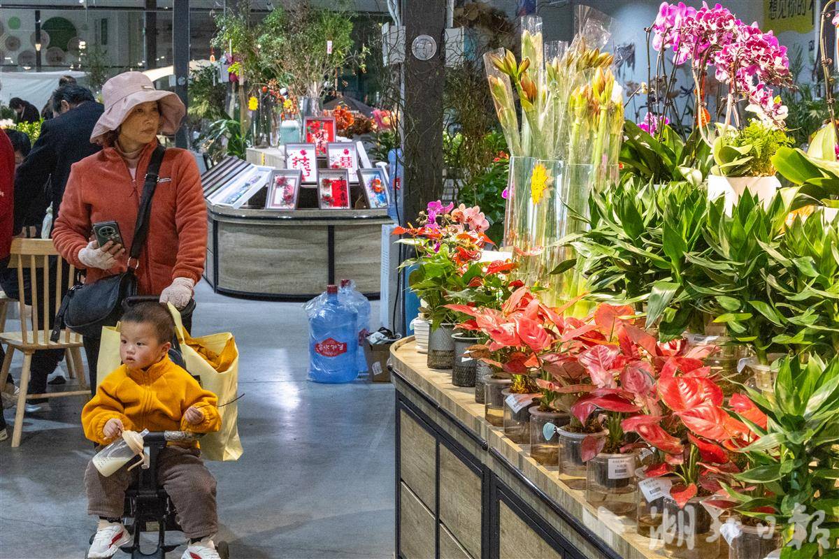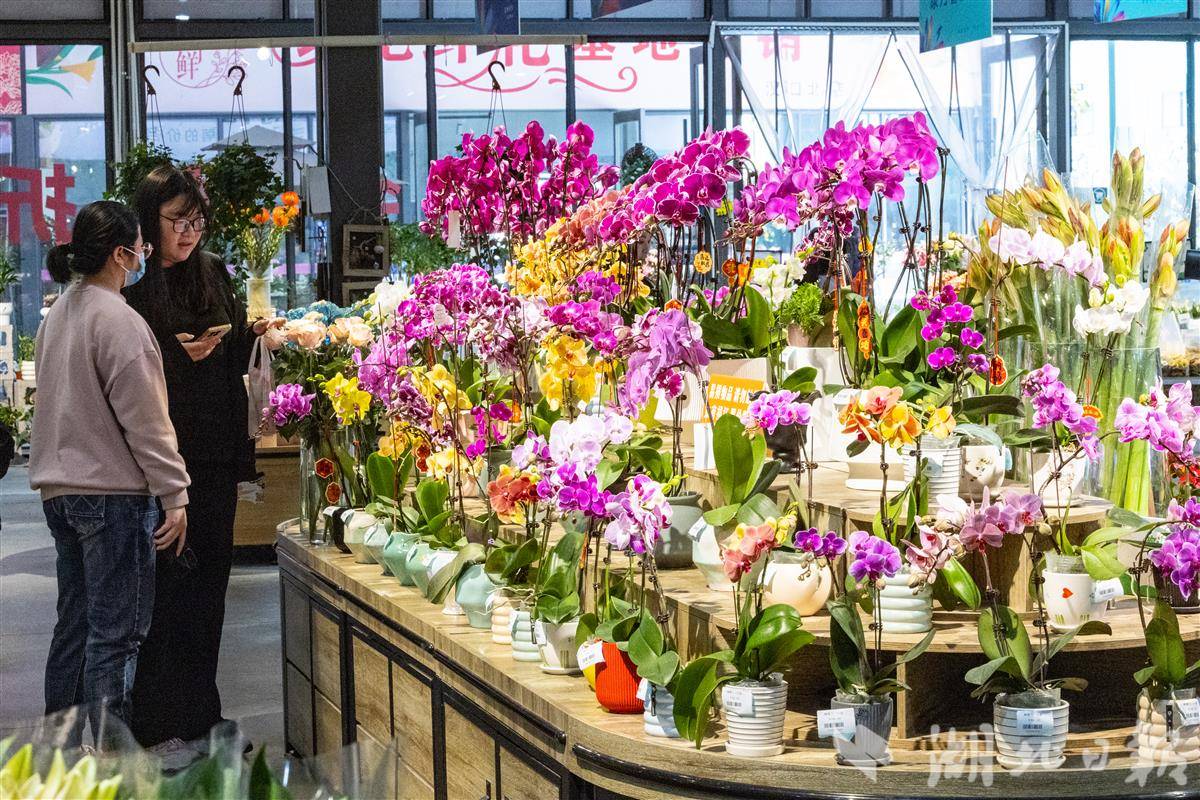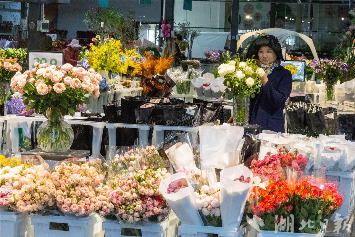 图为在汉口北鲜花小镇国际花卉与花艺交流展区,市民挑选鲜花。