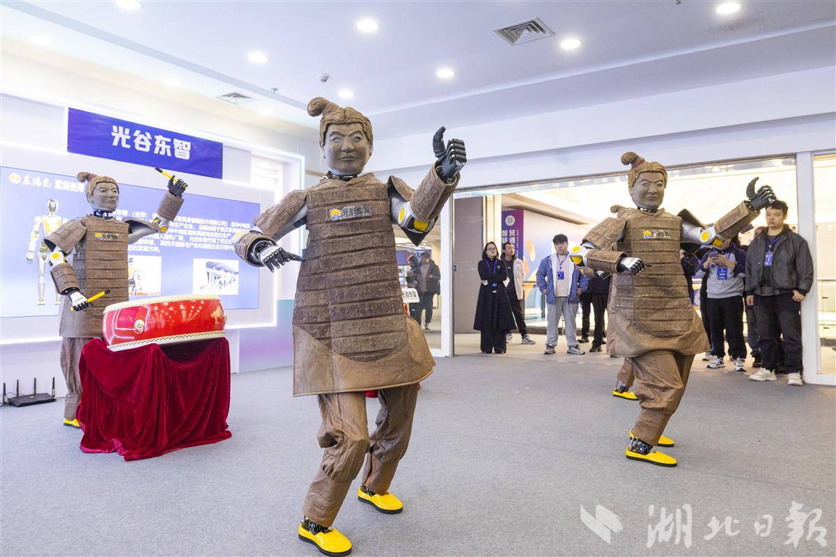 图为汉交会主展馆区内,来自“光谷东智”的机器人兵马俑进行舞蹈表演。