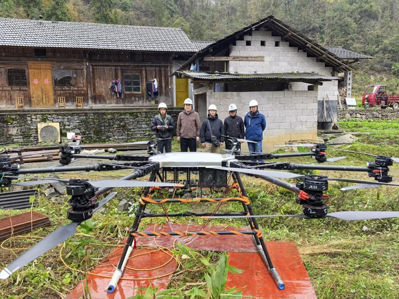 聚焦这一行业痛点,三峡院紧跟低空经济发展趋势,经过系统技术调研与场景适配,最终选定200公斤级工业重载无人机作为解决方案。该设备搭载高精度GPS定位与智能避障系统,可自主规划航线避开山体与林木,适用于300米孔深以内常规钻机及深孔全液压模块化钻机的物资运输。