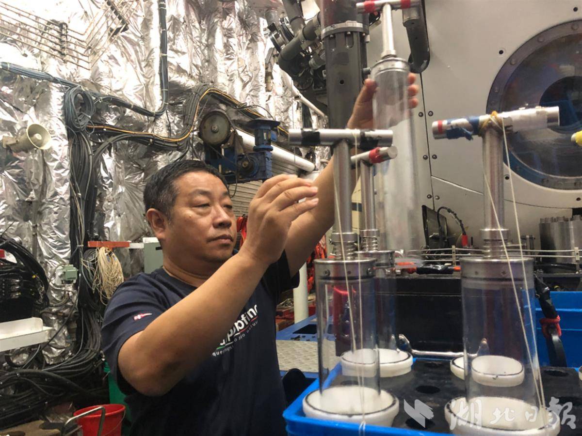 何舜平乘坐潜水器下潜至马里亚纳海沟工作中。(受访者提供)