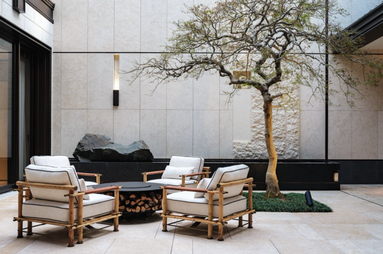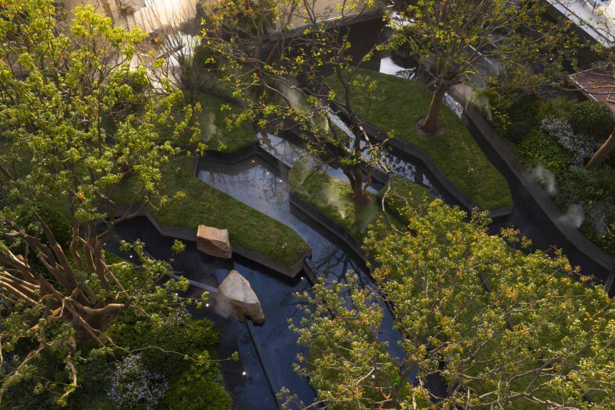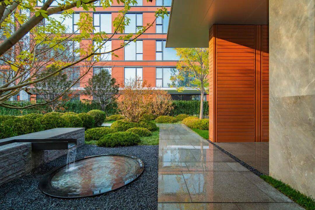 穿过大堂,溪谷水院与开阔园林徐徐展开。镜面水景与碧翠草坪相映成趣,艺术装置点缀于错落植被之间,宛若一幅立体景观画卷。其中,从雕塑到灯具、花钵的每一处软装细节,皆由顶级团队设计,构筑出一方可赏游的私密自然绿洲。