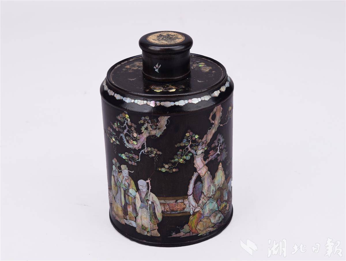 19世纪晚期红木嵌螺钿福禄寿三星茶叶罐 (江汉关博物馆供图)