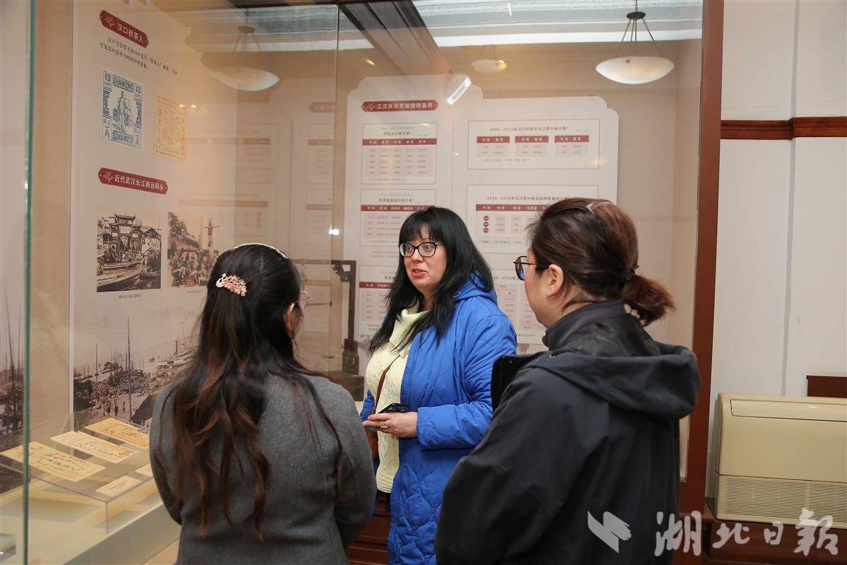 Olga(奥佳)在展厅参观(江汉关博物馆供图)