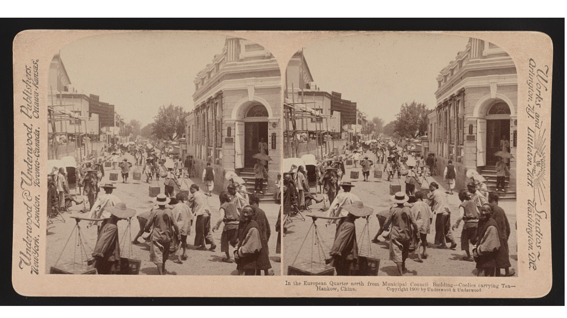 汉口江汉路口(太平路)搬运茶叶的繁忙景象摄影詹姆斯·利卡尔顿(美) 拍摄时间1900年