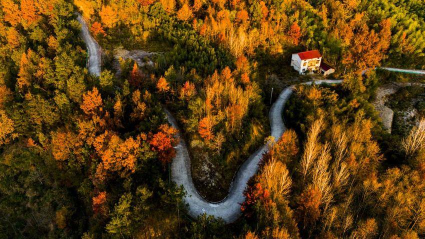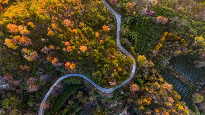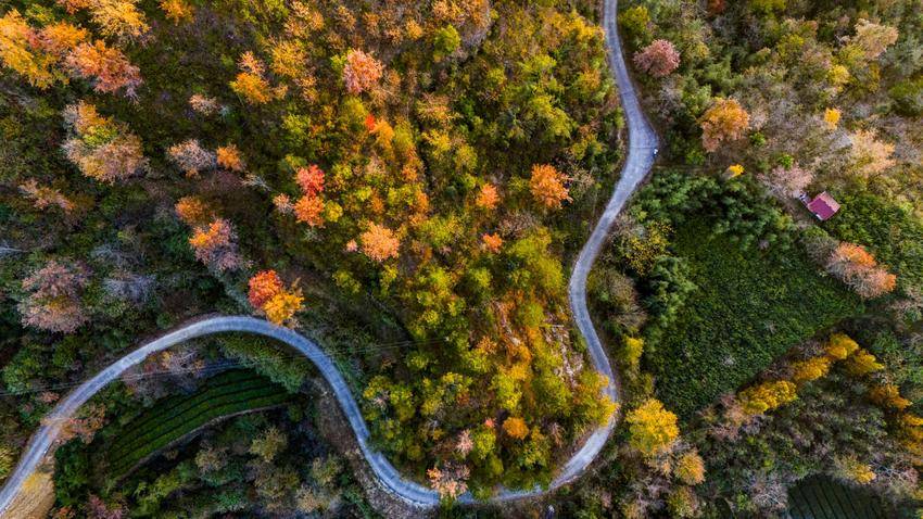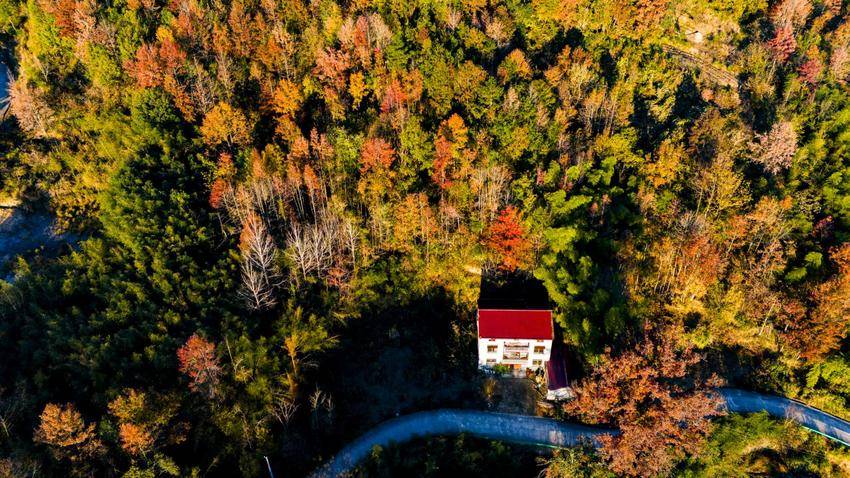 冷山村在英山北部山区,森林覆盖率达85%以上,独特的山地气候和丰富的植被资源,造就了红叶景观的独特魅力。每年11月中下旬,这里的枫树叶陆续变色,从山脚到山顶逐层递进,形成“层林尽染”的壮丽画卷。红叶随风摇曳,光影交错,随手一拍都是绝美的风景。