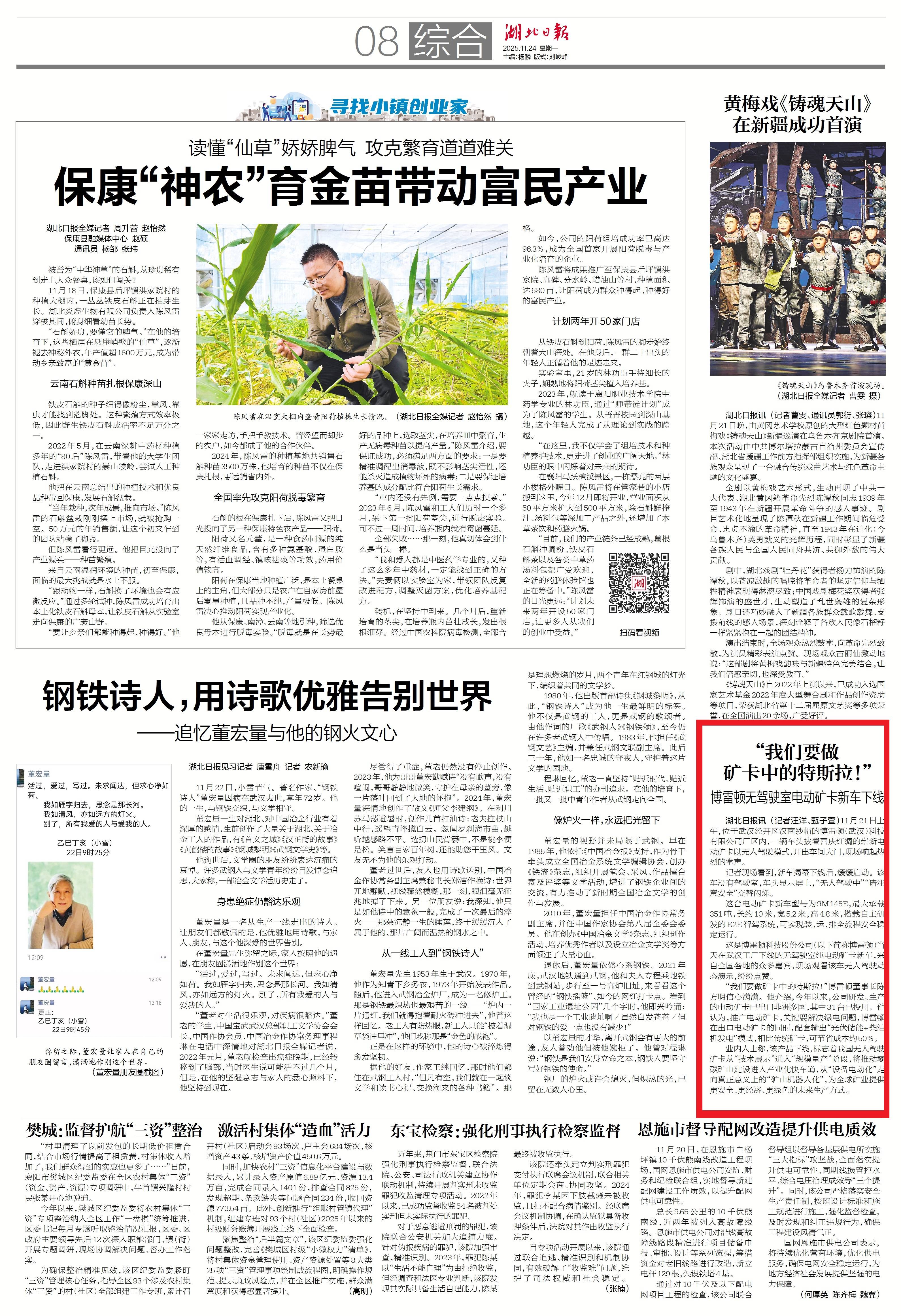 11月24日,湖北日报综合版报道:“车谷造”电动矿卡新车下线