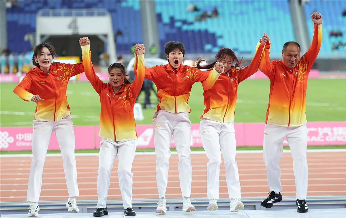 湖北夺女子4×100米接力冠军。(湖北日报全媒记者时龚摄)