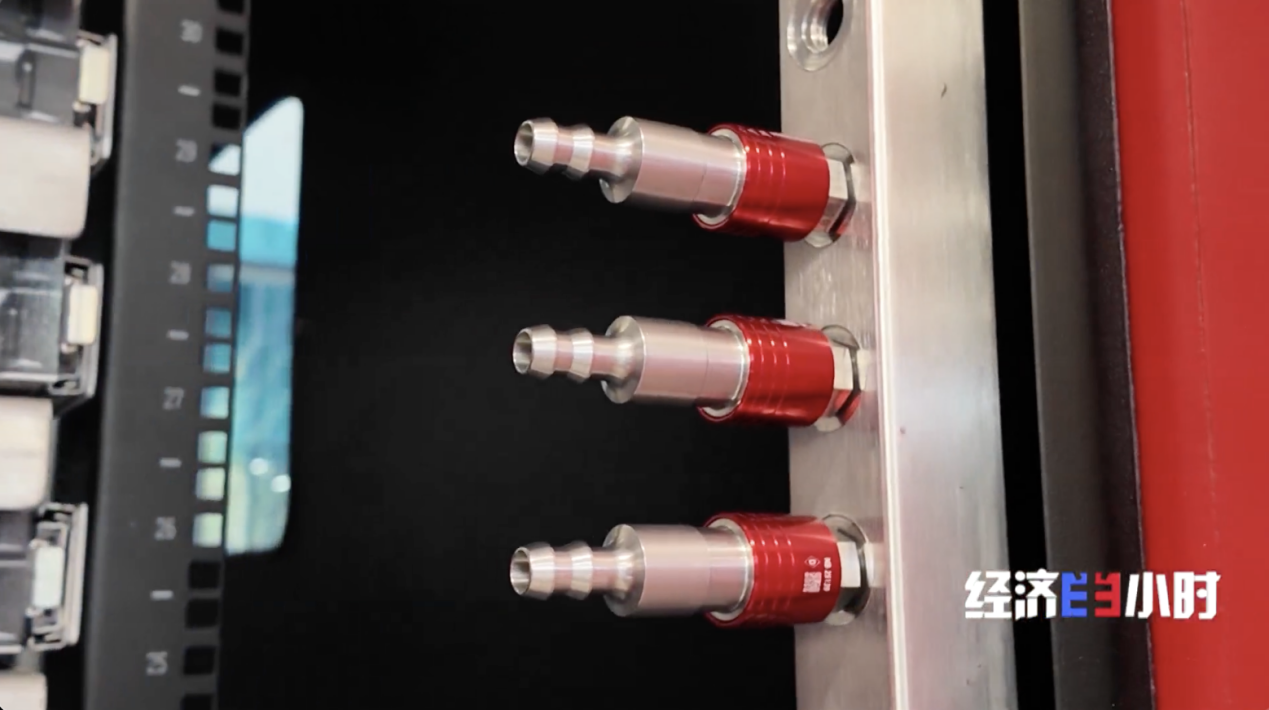 不少跨国企业都瞄准了中国市场,纷纷加码投资。丹麦一家国际工业巨头的中国区负责人向记者展示了他们公司今年的爆款产品:数据中心液冷快速链接件。它主要作用在液冷散热系统中,实现冷却液的快速流通与断开。
