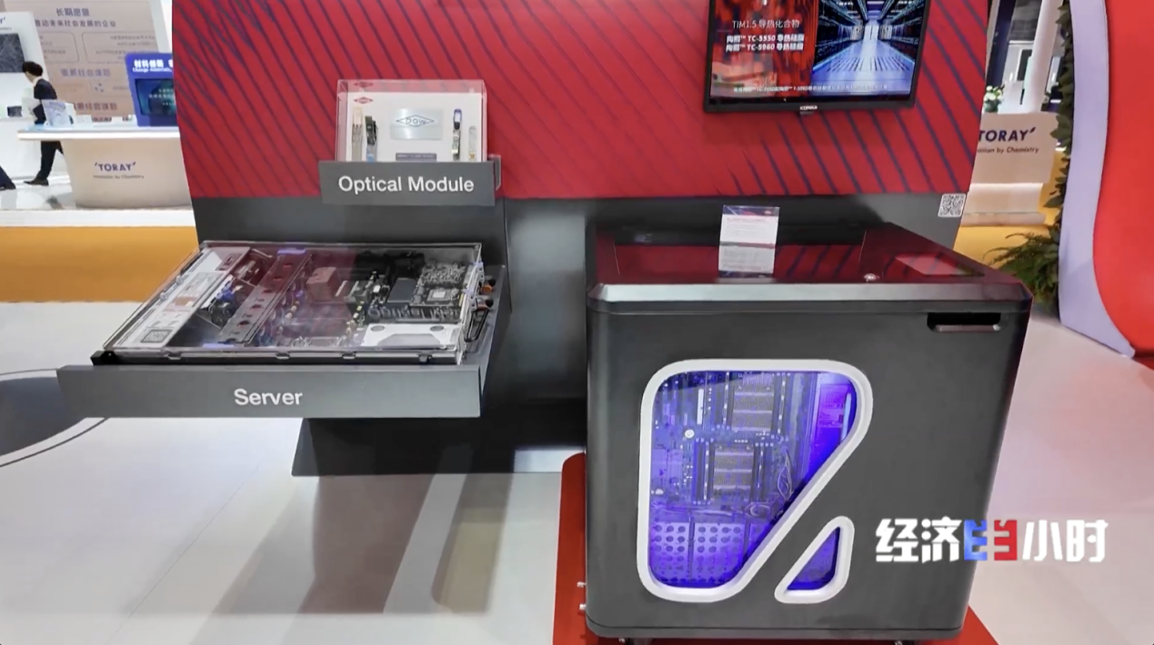 今年的进博会,他带来了一款“明星产品”——浸没式冷却系统,也被称作“服务器泡澡盆”。它的作用,就是给算力中心高速运转的“数字大脑”泡上冷水澡。
