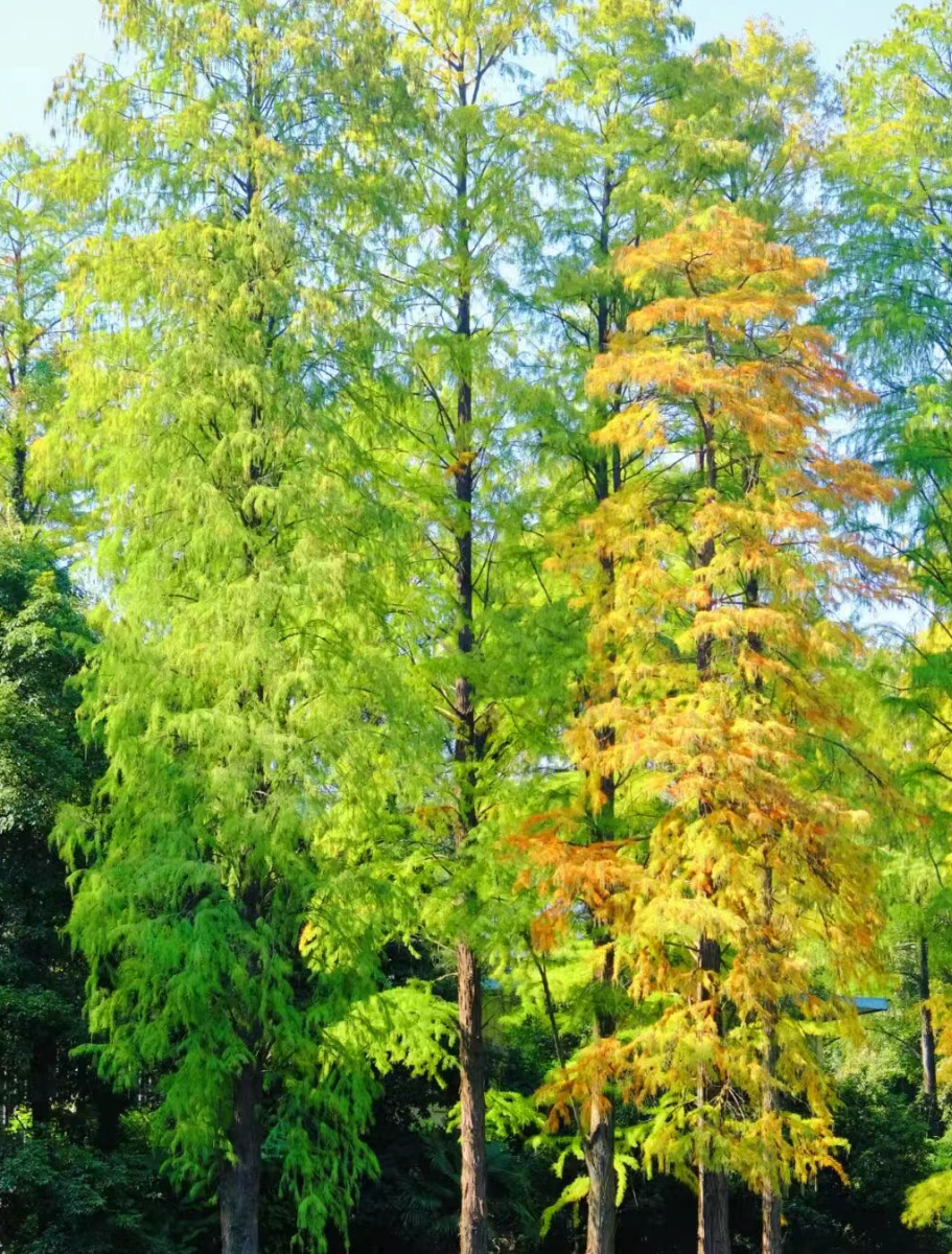 水杉的倒影不是简单的复制,而是水波对现实的再创作——