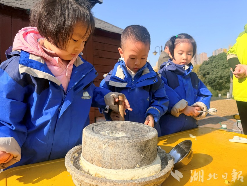 湖北日报客户端讯(通讯员方小齐)11月21日上午,武汉阳光在线幼儿园在洪山区关山公园组织了一场别开生面的“食育”实践课。孩子们在老师和社区志愿者的带领下,亲身体验豆浆制作的全过程,在动手实践中学习知识、培养技能、感悟劳动与分享。