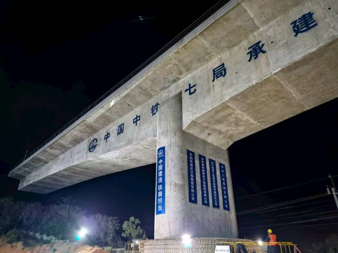 11月20日凌晨,夜色中的黄陂区塘埠口滠水河畔,一座总重6000吨的“T型”转体桥在液压驱动下缓缓转动。历经110分钟逆时针旋转83度后,这座长112米、宽12.6米的钢铁巨构精准抵达设计桥位,成功跨越京广高铁与沪蓉铁路下行线,标志着新建武汉至合肥高速铁路长江新区至武汉天河段建设取得关键突破。