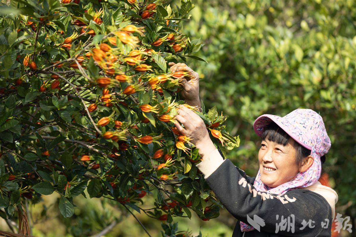 11月20日,秭归县郭家坝镇柏杨坪村的栀子迎来丰收,农户们正抓紧进行采摘、转运、销售,一派繁忙景象。近年来,秭归县大力推行“合作社+基地+农户”的模式,引导农民在撂荒闲置的土地上种植栀子,结出了可食用、入药、提炼精油和色素的“金果子”。栀子产业的发展不仅有效保护了三峡库区生态环境,更将生态优势转化为经济优势,实现了“绿水青山”与“金山银山”的双向转化,为当地农民开辟了稳定的增收渠道。(视界网 彭强 摄)