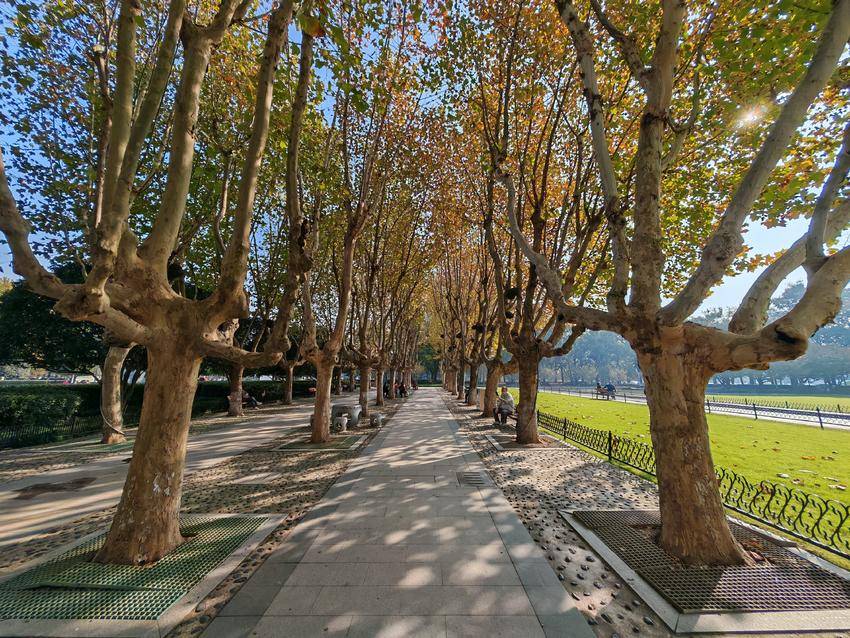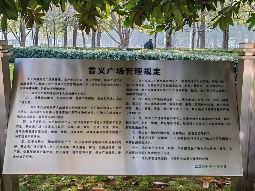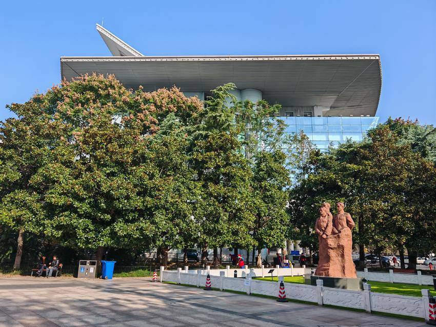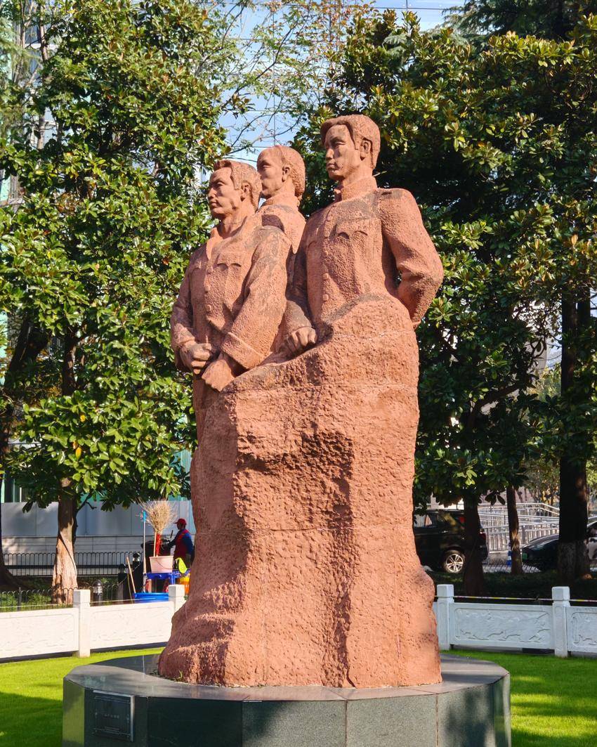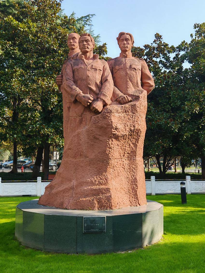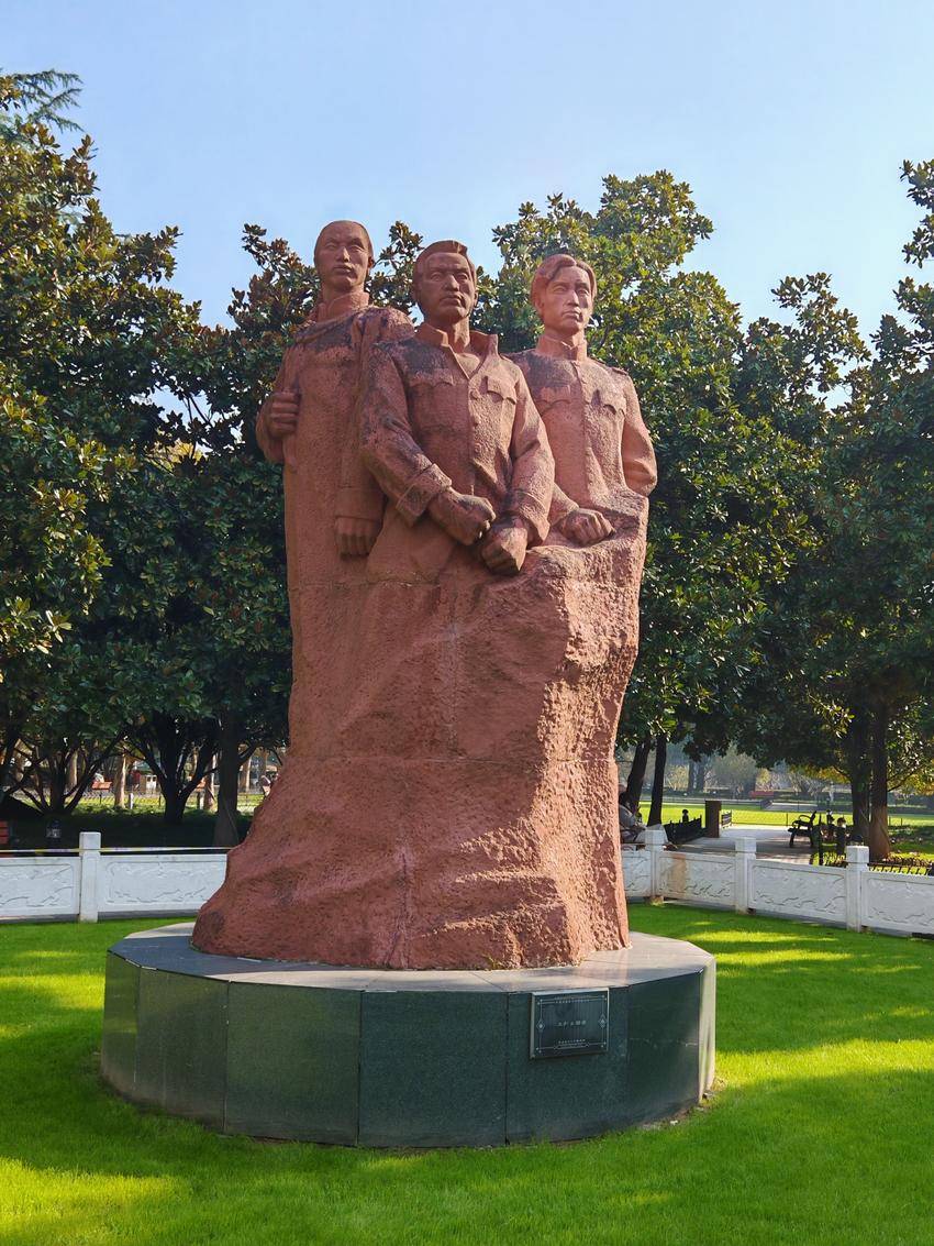 湖北日报客户端讯(通讯员陈保忠)11月22日,湖北省武汉市武昌区湖北剧院园区内,彭刘杨三烈士雕像巍然矗立于绿草如茵的草坪之上。周边,巨大的梧桐树整齐排列,参天而立,如同忠诚的卫兵,默默守护着这片承载着厚重历史的土地。