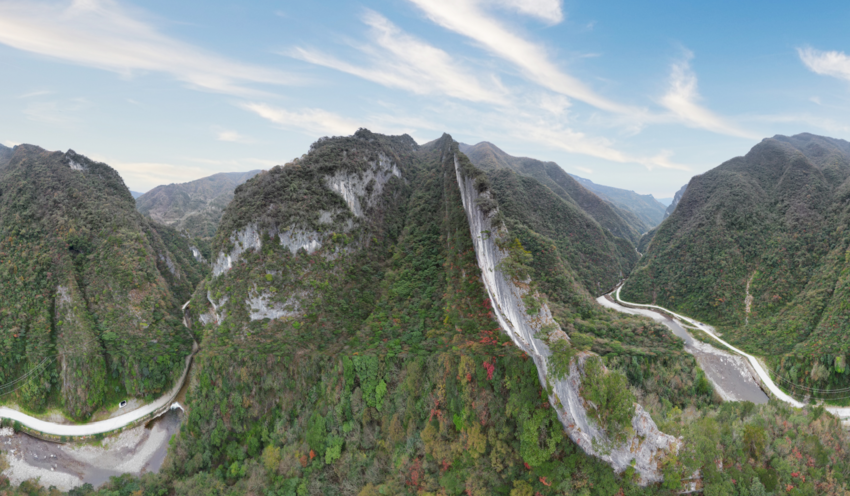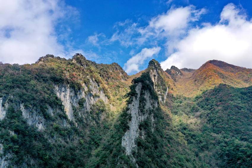 刀片山巍峨矗立,赭红岩壁在秋阳下愈发苍劲,宛如革命先辈挺拔的脊梁,勾勒出群山的刚毅轮廓,似利剑出鞘刺破苍穹,承载着往昔烽火岁月的记忆。209国道如银色丝带蜿蜒其间,串联起漫山秋景与红色印记,车行处,红叶纷飞似霞映初心,黄叶翩跹如蝶述峥嵘,风携果香与英雄气息萦绕鼻尖,让人在秋染群山的盛景中,尽享自然灵秀与红色底蕴交融的独特韵味。