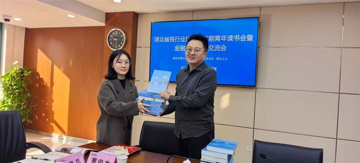 《金融文坛》副主编栾晓阳代表金融作家阎雪君向湖北省银行业协会青年员工赠送《序栩如生》一书